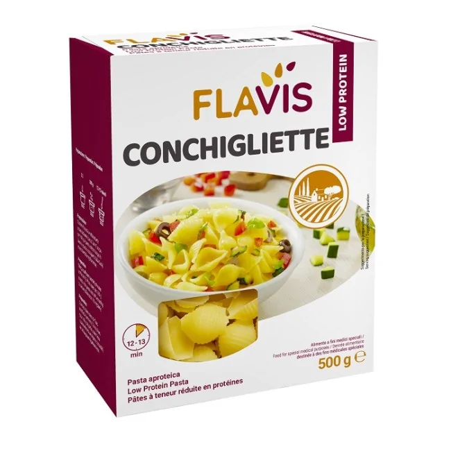 Dr. Schar Flavis Conchigliette Aproteiche sono una pasta corta senza glutine e a basso contenuto proteico, specificamente formulata per persone con particolari esigenze dietetiche come l'insufficienza renale cronica o la fenilchetonuria