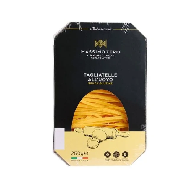 Massimo Zero Tagliatelle All'Uovo sono tagliatelle all'uovo senza glutine, realizzate con uova fresche per garantire un sapore ricco e una consistenza tradizionale. Sono ideali per chi cerca una pasta di alta qualità adatta a diete specifiche, senza rinunciare al gusto italiano Formato: 250 grammi