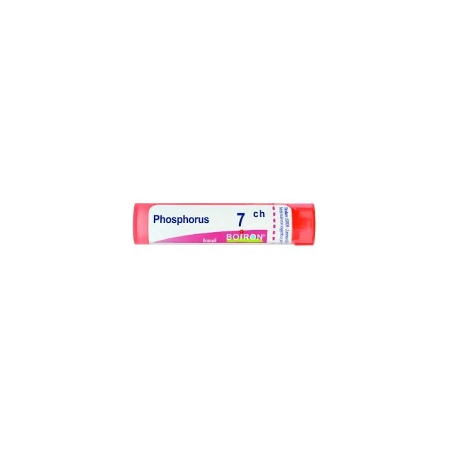 Boiron Phosphorus 7ch Granuli è un rimedio omeopatico preparato attraverso un processo di diluizione e dinamizzazione, che consiste nel diluire ripetutamente una sostanza di partenza (vegetale, animale o minerale) e nel sottoporla a scuotimenti energici. Questo processo, secondo i principi dell'omeopatia, potenzia l'azione del rimedio.