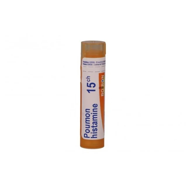 Boiron Poumon Histamine 15CH Granuli è un rimedio omeopatico in granuli, preparato secondo i principi dell'omeopatia. Questo prodotto contiene la sostanza Poumon Histamine in una diluizione media, 15CH.