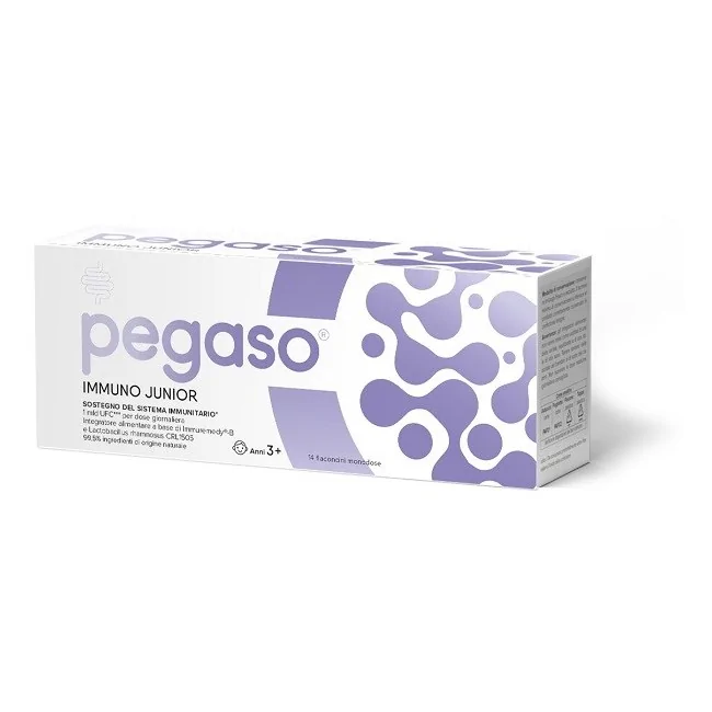 Pegaso Immuno Junior è un integratore alimentare a base di estratti vegetali e fermenti lattici, utile per rafforzare le difese immunitarie. Formato 14 flaconcini