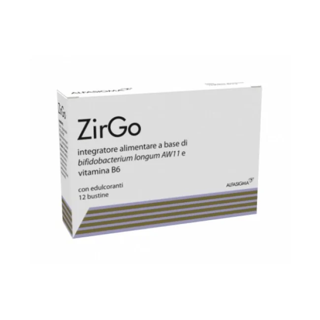 Alfasigma Zirgo è un integratore alimentare a base di fermenti lattici probiotici, specificatamente Bifidobacterium longum AW11. È indicato per favorire l'equilibrio della flora batterica intestinale, che può essere alterata da vari fattori come l'uso di antibiotici, una dieta squilibrata o stress. Formato: pacchetto convenienza