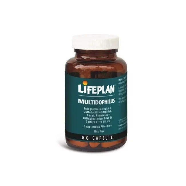 Lifeplan Multidophilus è un integratore alimentare a base di fermenti lattici probiotici, specificamente una combinazione di Lactobacillus acidophilus, Lactobacillus casei, Lactobacillus rhamnosus e Bifidobacterium breve. È indicato per favorire l'equilibrio della flora batterica intestinale. Formato: 50 capsule