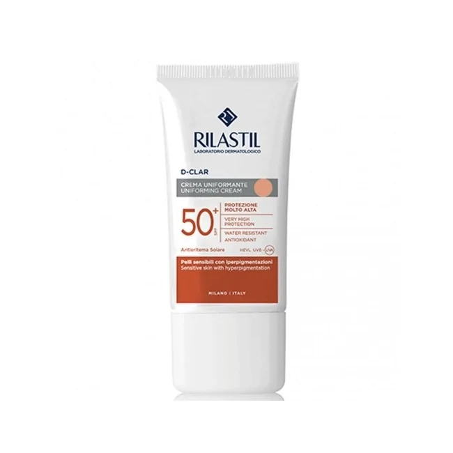 Rilastil Sun System D-Clar Medium Spf 50+ è una crema fotoprotettiva dalla texture vellutata specificatamente formulata con Claritech Complex, in grado di prevenire e contrastare la formazione di macchie brune.