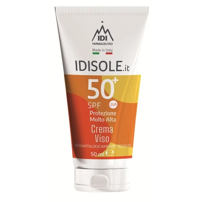Idi Farmaceutici Idisole-it Spf50+ crema viso è un cosmetico indicato per proteggere la pelle sensibile dai raggi solari. Formato 50 ml