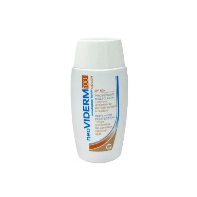 Neoviderm 100 Color è un'emulsione dermoprotettiva con SPF 50+ e pigmenti colorati, ideale per proteggere e uniformare pelli irritate o lesionate (es. dopo trattamenti estetici o scottature). Ripara la cute e mimetizza le imperfezioni, offrendo un'altissima protezione solare. Formato: 50 ml
