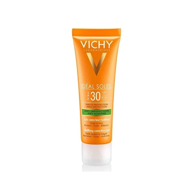 Vichy Ideal soleil viso anti-imperfezioni è un trattamento protettore correttivo effetto mat SPF 30.