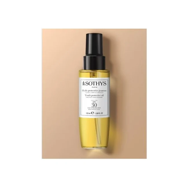 Sothys Olio Protettore Giovinezza SPF 30 è una soluzione completa per la protezione solare che va oltre la semplice difesa dai raggi UV, offrendo un'azione anti-età e nutriente per mantenere la pelle e i capelli giovani e sani sotto il sole. Formato: 100 ml