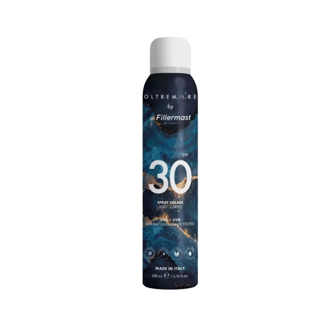 Il Dr. Fillermast Spray Solare 30+ è una protezione ad Alto Fattore (SPF 30+) per viso e corpo, specificamente studiata per pelli chiare o sensibili che necessitano di una difesa intensa dai raggi UVA e UVB. La formula è in spray trasparente, resistente all'acqua e arricchita con ingredienti idratanti e antiossidanti. Formato: 200 ml