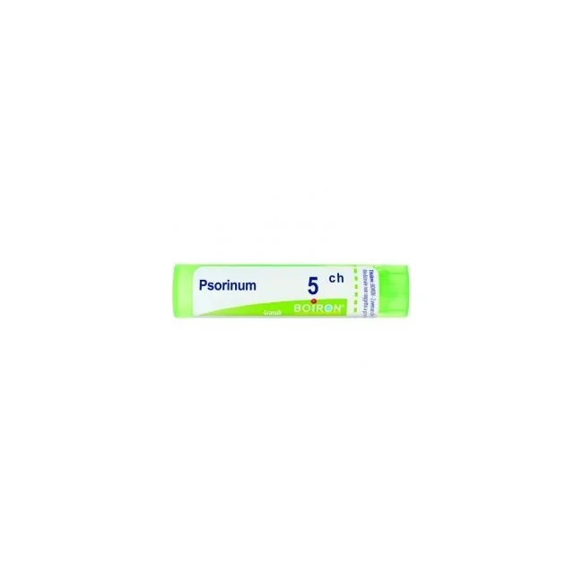 Boiron Psorinum 5ch Granuli medicinale omeopatico è un rimedio omeopatico preparato attraverso un processo di diluizione e dinamizzazione, che consiste nel diluire ripetutamente una sostanza di partenza (vegetale, animale o minerale) e nel sottoporla a scuotimenti energici. Questo processo, secondo i principi dell'omeopatia, potenzia l'azione del rimedio.