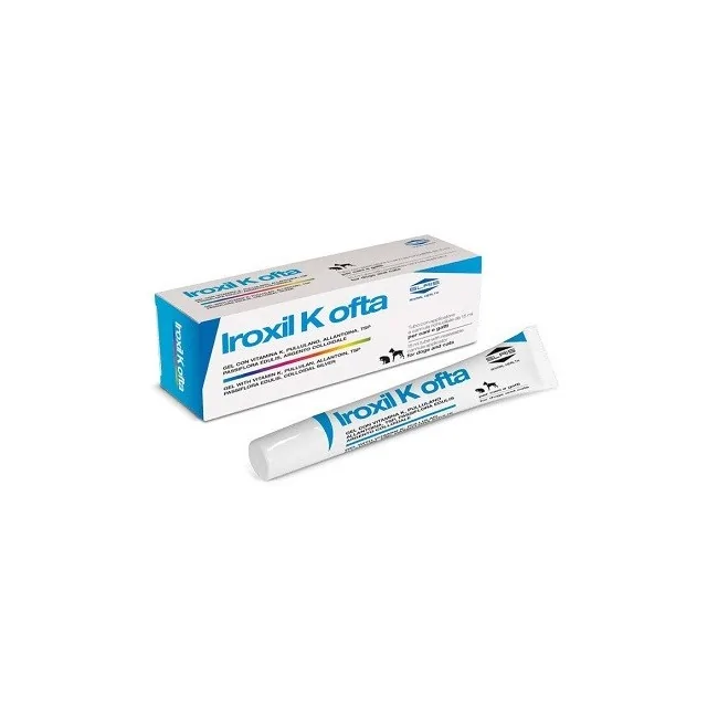Iroxil K Ofta è un prodotto veterinario non farmacologico per la protezione dell'occhio di cani e gatti. Gel con vitamina K, pullulano, allantoina, TSP Passiflora edulis, argento colloidale. È un coadiuvante nel fisiologico processo di rigenerazione tissutale. Per cani e gatti.