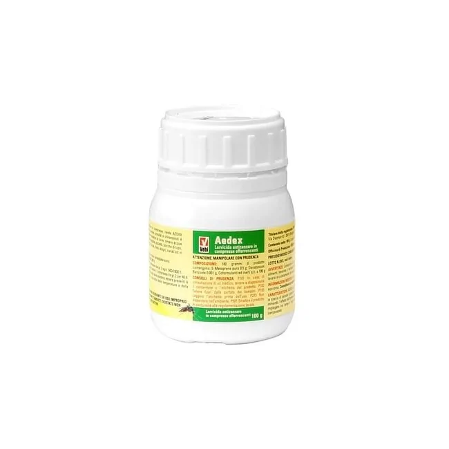 AEDEX è un larvicida in compresse effervescenti estremamente efficace contro tutte le specie di zanzare (compresa la zanzara “tigre”). AEDEX esplica la sua azione per ingestione e contatto, mimando l’effetto dell’ormone giovanile che impedisce alla larva di trasformarsi e diventare adulto. Se impiegato nei tempi e nelle modalità corrette, presenta una certa selettività verso i predatori e gli iperparassiti; è relativamente innocuo per le altre specie animali.