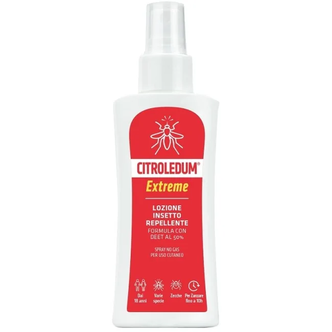 Citroledum Lozione Spray Extreme Deet 50% è un prodotto utile per allontanare sia zanzare che insetti volanti, anche in caso di infestazione significativa
