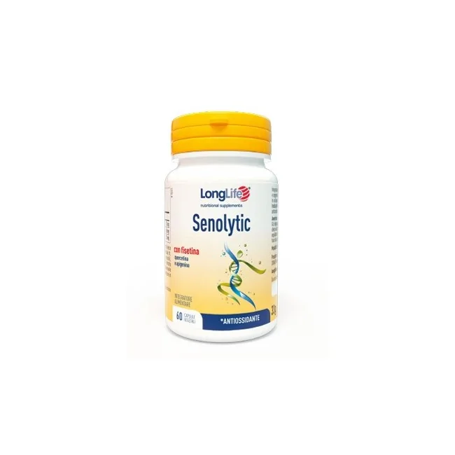 Longlife Senolytic è un integratore a base di ingredienti naturali progettato per supportare il processo di eliminazione delle cellule senescenti, promuovendo la vitalità e il benessere a lungo termine. Contribuisce a mantenere una pelle sana e un metabolismo attivo. Formato: 60 capsule