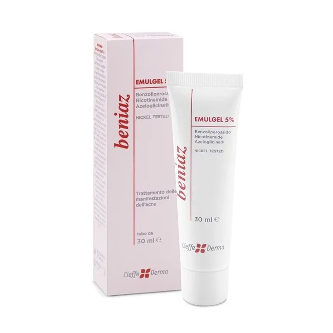 Beniaz emulgel 5% è un dispositivo medico indicato nel trattamento delle pelli grasse e acneiche. Grazie alla sua formulazione in emulgel (senza alcool) e all'azione sinergica dei 3 principi attivi, forma una barriera protettiva che disinfetta la cute agendo contro i batteri che causano l'acne.