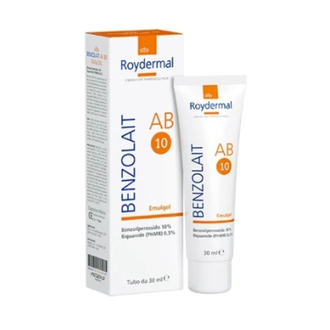 Benzolait è un dispositivo Medico CE, emulgel Roydermal per uso topico per pelli a tendenza acneica. A base di Benzoylperoxide 10%, Biguanide (PHMB).