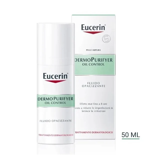 - Eucerin Dermopurifyer Oil Control contrasta efficacemente i brufoli ed i punti neri ed aiuta a controllare i bisogni della pelle impura e a tendenza acneica a lungo termine.