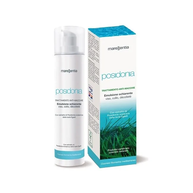 Posidonia Emulsione Schiarente è un trattamento anti-macchie con estratto di posidonia oceanica da applicare su viso. collo e decollete