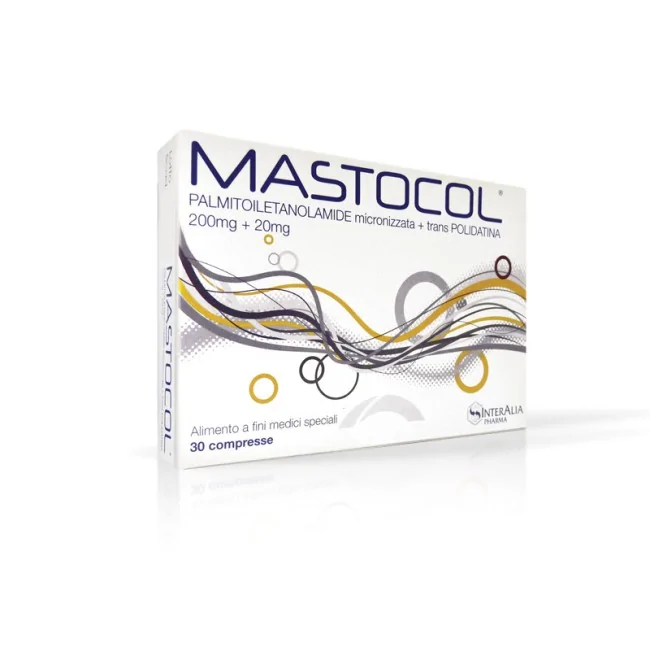 Mastocol è un alimento destinato a fini medici speciali, contenente l’associazione brevettata di due principi attivi presenti in alimenti: Palmitoiletanolamide, in forma micronizzata (PEA-m), e Polidatina. PEA-m si è dimostrata in grado di favorire il mantenimento di una corretta funzionalità della mucosa intestinale, e di contribuire al ripristino di una corretta sensibilità viscerale, contrastando il dolore addominale.