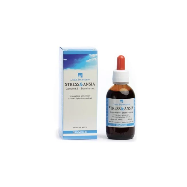 Erbavoglio Stressenziale & Ansia Gocce N°5 è un integratore alimentare a base di erbe, specificamente formulato per contrastare la stanchezza fisica e mentale, spesso associata a periodi di stress prolungato. Formato: 50 ml