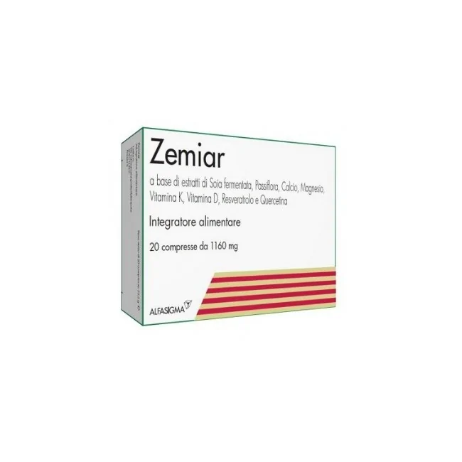 Zemiar è un integratore alimentare a base di estratti di passiflora e soia fermentata con equolo, calcio, magnesio, vitamina K, vitamina D, resveratrolo e quercetina. Zemiar è utile per i disturbi della perimenopausa.