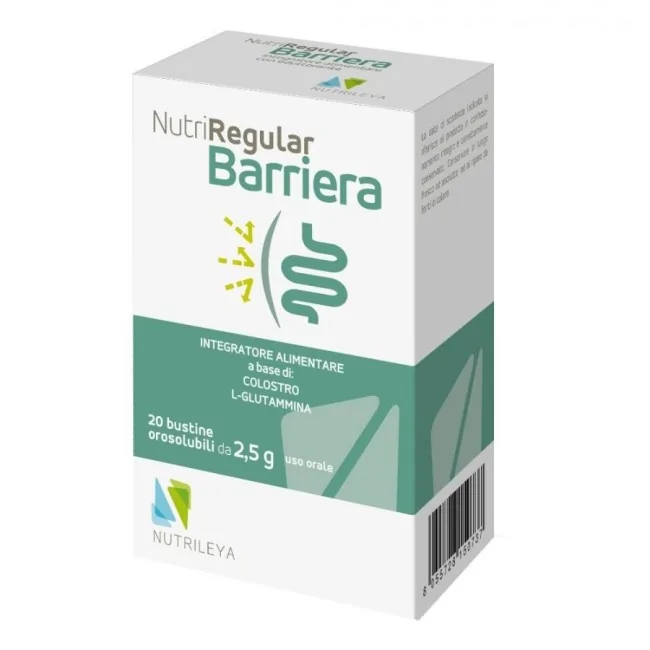 NutriRegular Barriera 20 Bustine è un integratore alimentare a base di colostro e L-glutammina, che contribuiscono al benessere del microbiota intestinale. È un prodotto senza glutine.