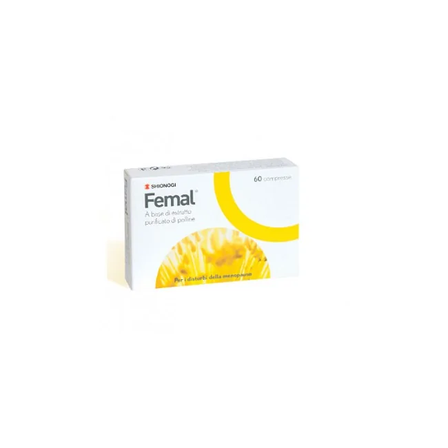 Shionogi Femal è un integratore alimentare i cui componenti attivi sono utili a migliorare il benessere della donna, alleviando i disagi che si manifestano appena prima del periodo mestruale (sindrome premestruale), così come gli inconvenienti tipici della menopausa. Con vitamina E Shionogi Femal è un efficace antiossidante. Con estratto di polline GC Fem prodotto mediante l'estrazione dal polline fresco, questo integratore alimentare di Shionogi garantisce un rilascio completo dei nutrienti contenuti nel polline.