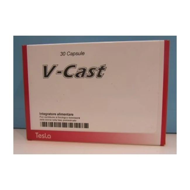 La capsula V Cast è un integratore alimentare venduto per supportare la salute femminile, in particolare durante la fase premestruale. Contiene l'Agnus Castus (Vitex agnus-castus), un arbusto da frutto originario del Mediterraneo.