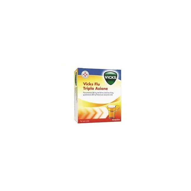 Vicks Flu Tripla Azione è un farmaco di automedicazione indicato per trattare il dolore da lieve a moderato, febbre, associata a raffreddore, brividi ed influenza.
