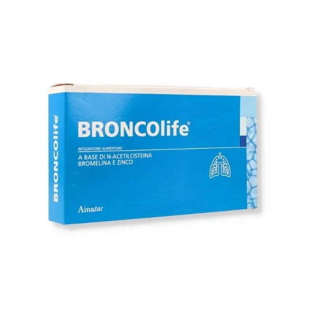 Broncolife ainatac è un integratore alimentare a base di N-Acetilcisteina, Bromelina e Zinco utile per il benessere dell'apparato respiratorio.