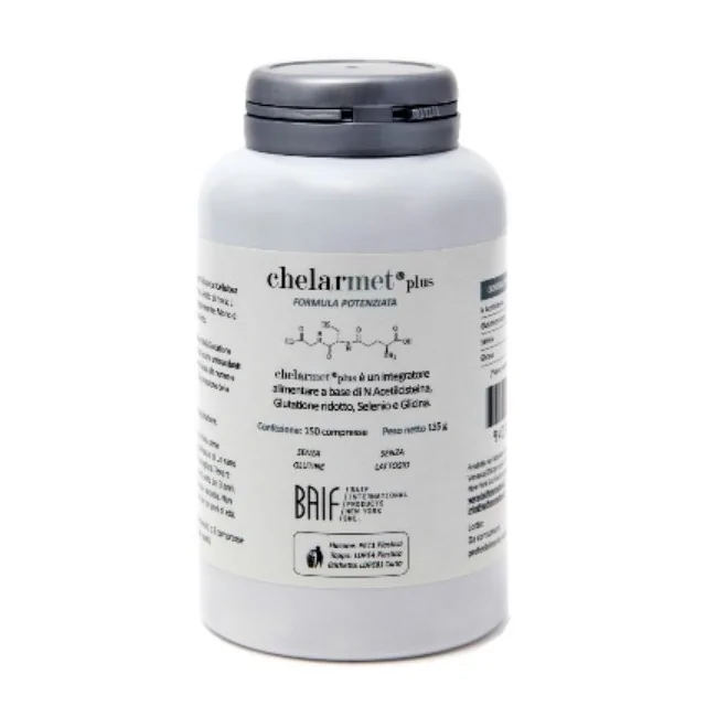 Chelarmet plus è un integratore a base di N-acetilcisteina, glutatione ridotto, selenio e glicina.