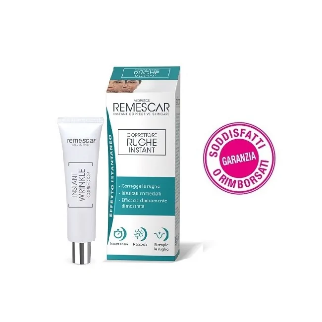 Remescar Correttore Rughe Instant è una crema a effetto immediato che agisce sulle rughe nell’area delicata del contorno occhi, tra le sopracciglia o intorno a bocca e naso con una sola applicazione al giorno. La sua tecnologia e-WRINK FLEX, basata su una combinazione unica di estratti di alghe rosse, minerali d’argilla, zuccheri vegetali e molecole naturali che proteggono dallo stress ossidativo, riempie le rughe donando istantaneamente alla pelle un aspetto più liscio e giovane.
