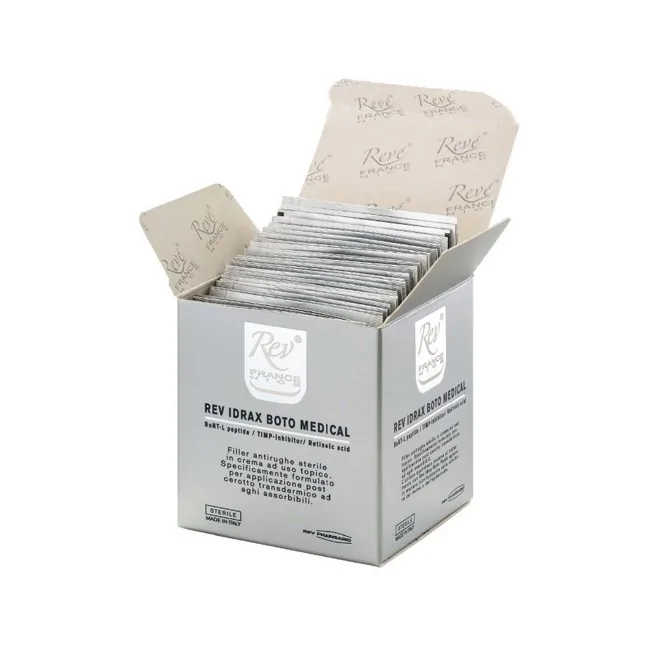 Rev Pharmabio Rev Idrax Boto Medical è una crema antirughe in bustine monouso che favorisce la formazione del collagene.