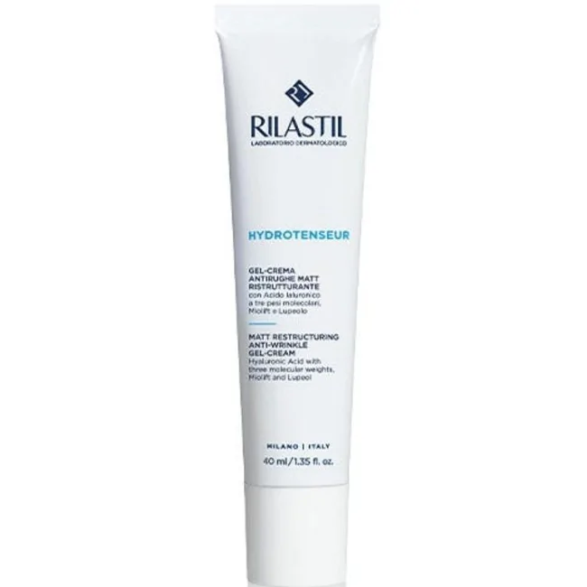 il Gel-crema viso anti-rughe Rilastil hydrotensour mattificante intensivo ristrutturante adatto per pelli miste che elasticizza la pelle e distende le rughe.