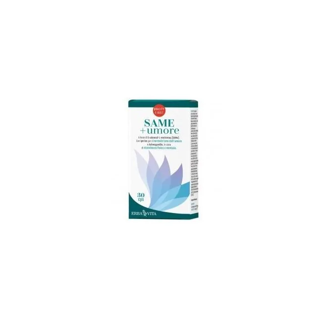 Erba Vita Same + Umore 30 Capsule è un integratore alimentare a base di S-Adenosil-L-Metionina (SAMe), Iperico, Ashwagandha, Acido folico e Vitamina B12, formulato per supportare il benessere mentale e contrastare i sintomi di stress, stanchezza e umore basso.