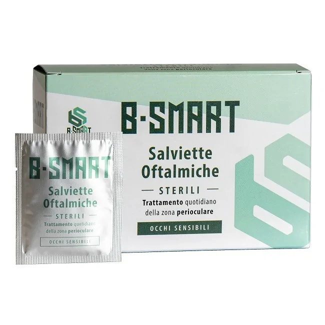 Le salviette oculari B-smart sono un dispositivo medico indicato per l'igiene quotidiana di palpebre e ciglia. Sono particolarmente utili in caso di secrezioni oculari dovute a fenomeni allergici, infiammatori o infettivi come blefariti e blefarocongiuntiviti. Formato: 20 salviette