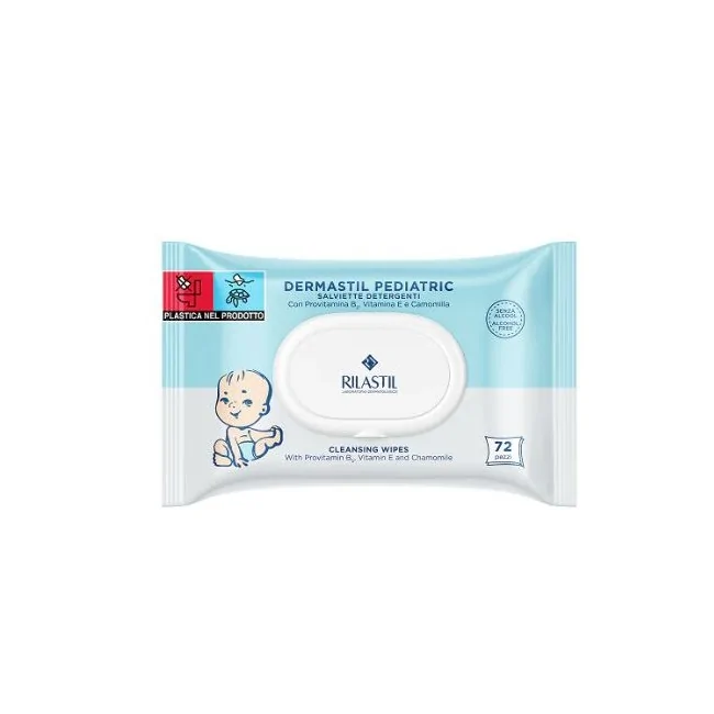 Rilastil Dermastil Salviette Detergenti sono salviette umidificate specificamente formulate per la pulizia delicata della pelle sensibile di neonati e bambini. Formato: 72 salviette