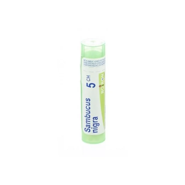 Boiron Sambucus Nigra 5ch Granuli omeopatici è un rimedio omeopatico preparato attraverso un processo di diluizione e dinamizzazione, che consiste nel diluire ripetutamente una sostanza di partenza (vegetale, animale o minerale) e nel sottoporla a scuotimenti energici. Questo processo, secondo i principi dell'omeopatia, potenzia l'azione del rimedio.