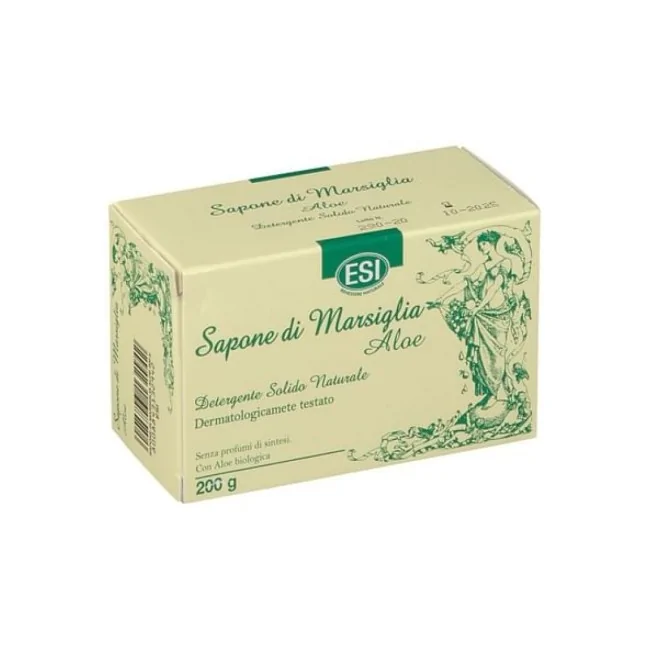 Esi sapone marsiglia aloe è un detergente solido, indicato per idratare e ammorbidire la pelle, anche quella più sensibile. Formato: 200 grammi
