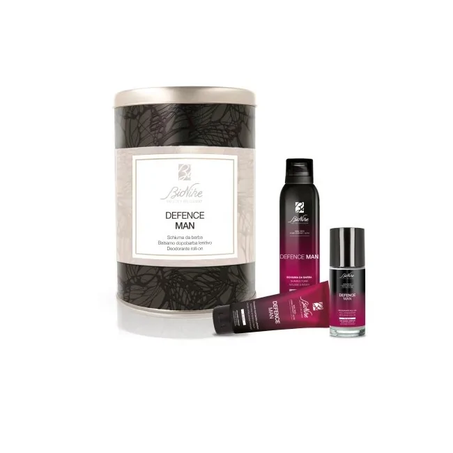 Bionike defence man cofanetto regalo contiene schiuma da barba, balsamo pelle sensibile e deodorante