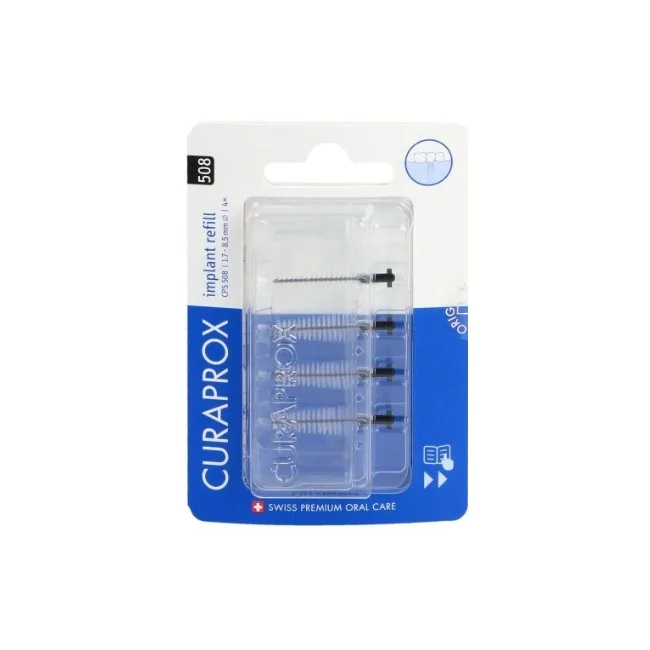 Il prodotto Curaden Healthcare Curaprox Capsule 508 Implant Refill 4x Black si riferisce a una confezione di ricariche per uno spazzolino specifico della linea Curaprox, destinato alla pulizia degli impianti dentali.