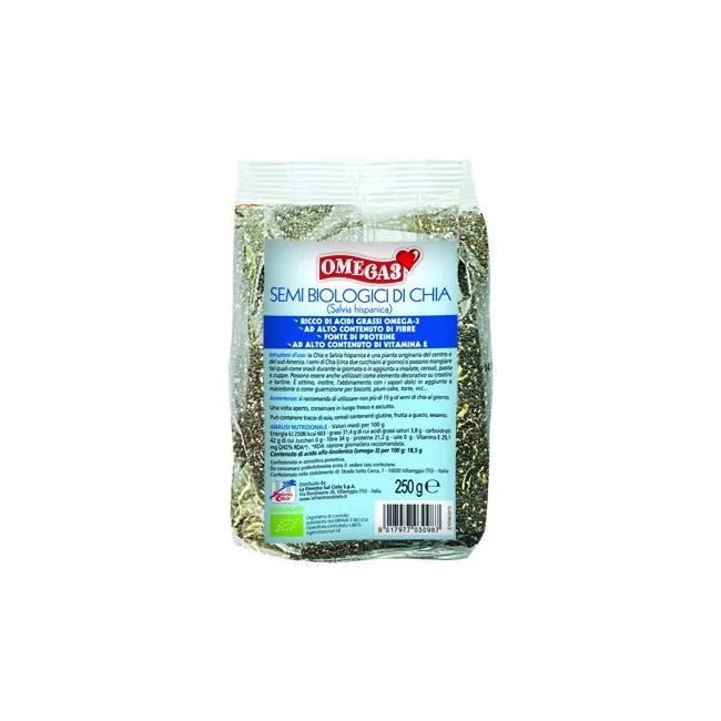 La chia o salvia hispanica è una pianta originaria del centro e del sud America. I semi sono ideali in aggiunta a muesli, cereali, insalate e pasta fredda. Conosciuti ed apprezzati per le numerose proprietà: ricco di acidi grassi Omega-3, ad alto contenuto di fibre e vitamina E, fonte di proteine.