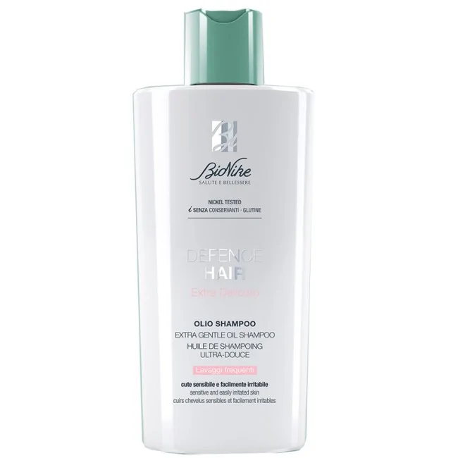 La Formula Bionike Defence Hair Shampoo Extra Delicato a base olio che deterge per affinità. Per le proprietà emollienti è ideale in caso di prurito e cuoio capelluto irritato e per lavaggi frequenti. Si risciacqua facilmente e non appesantisce i capelli.