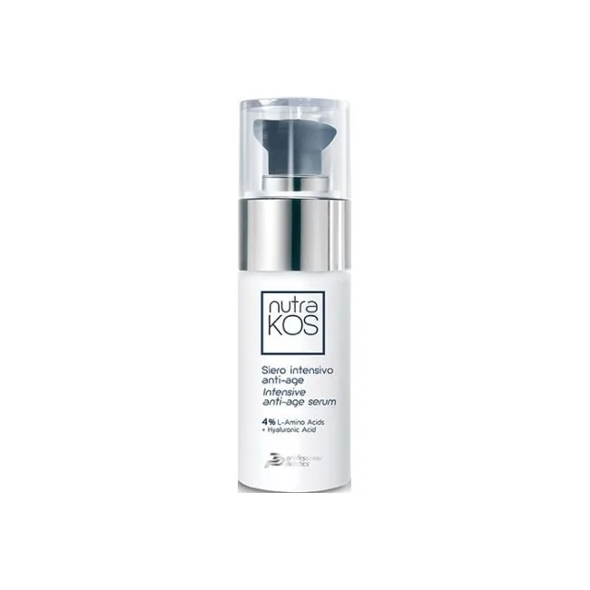Nutrakos Siero Intensivo Antiage è un cosmetico per il viso con aminoacidi e acido ialuronico utile per favorire un effetto antirughe ed antinvecchiamento. Formato: 30 ml