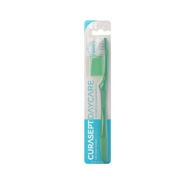 Curasept Daycare Spazzolino Eco Medium ha un manico in bioplastica da fonti rinnovabili e setole di media durezza in Tynex. È ideale per una pulizia efficace e profonda con attenzione alla sostenibilità. Formato: 1 pezzo