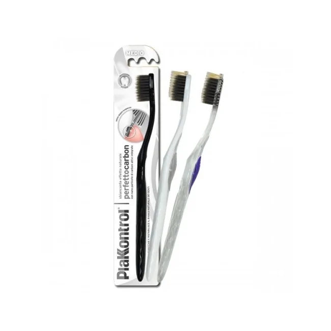 Plakkontrol Perfetto Carbon spazzolino con setole al carbone ad azione sbiancante e antimacchia
