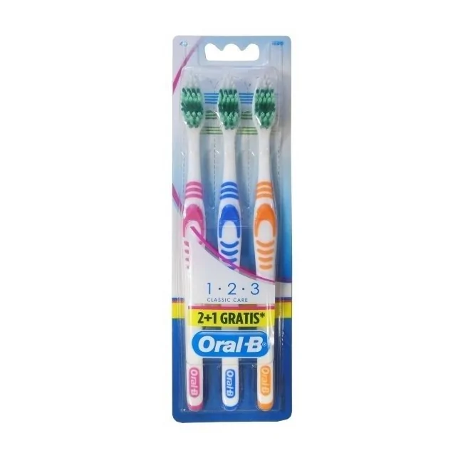 Oral B Spazzolino 1.2.3 Classic Care in confezione da 3 spazzolini che puliscono profondamente.