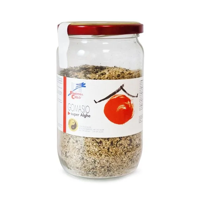 Il Gomasio alle Alghe Bio La Finestra sul Cielo è un condimento innovativo e nutriente, perfetto per chi cerca un'alternativa gustosa e salutare al tradizionale sale da cucina. Questa miscela, ottenuta dalla tostatura e dalla macinazione di semi di sesamo e da una selezione di alghe marine. Formato: 300 grammi