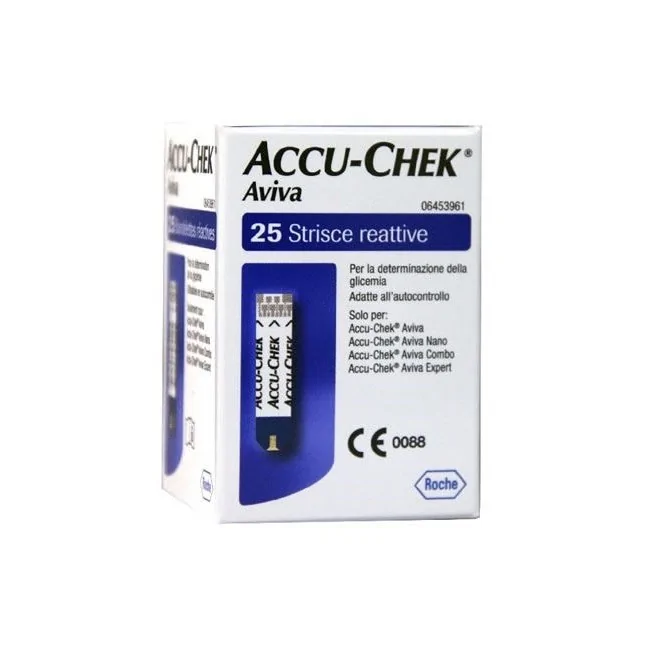 Accu-chek Aviva in confezione da 25 strisce reattive utile nei pazienti diabetici, per la determinazione della glicemia