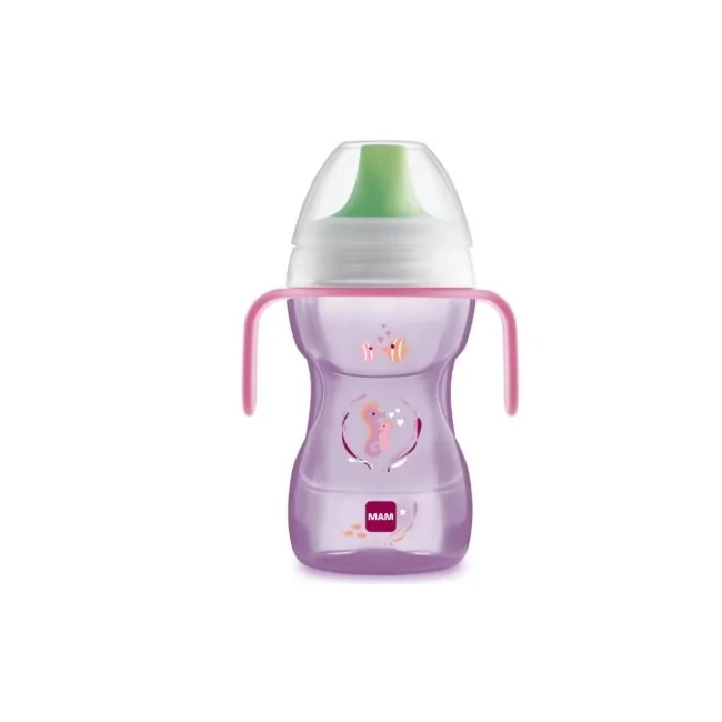 La MAM Fun to Drink Cup è progettata per aiutare il bambino a passare facilmente dal biberon o dalla tazza con beccuccio morbido a un vero e proprio bicchiere, grazie al suo beccuccio rigido e al design a prova di perdita.
